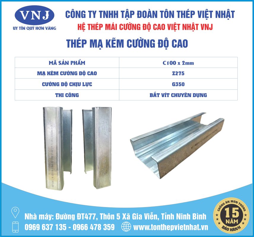 Thanh thép TC100x2.0mm mạ kẽm cường độ cao
