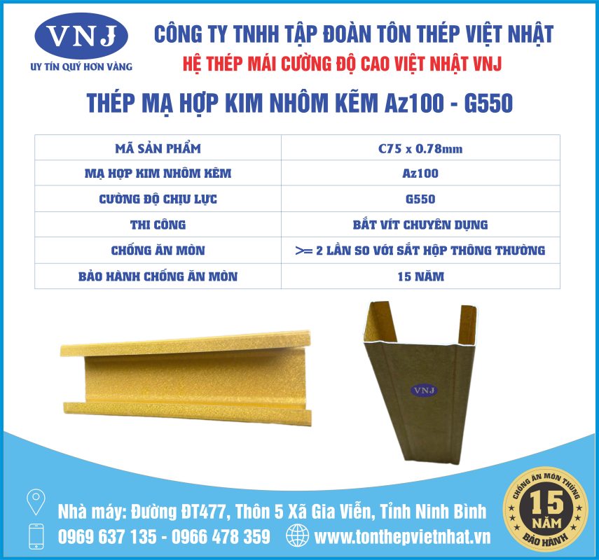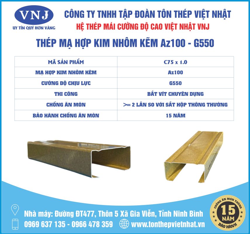 - Chất liệu: Thép cường độ cao G550 mạ nhôm kẽm AZ100