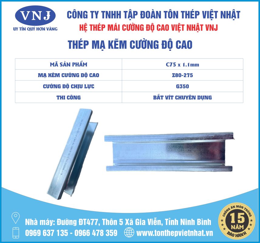 Thanh thép TC75x1.1mm mạ kẽm cường độ cao