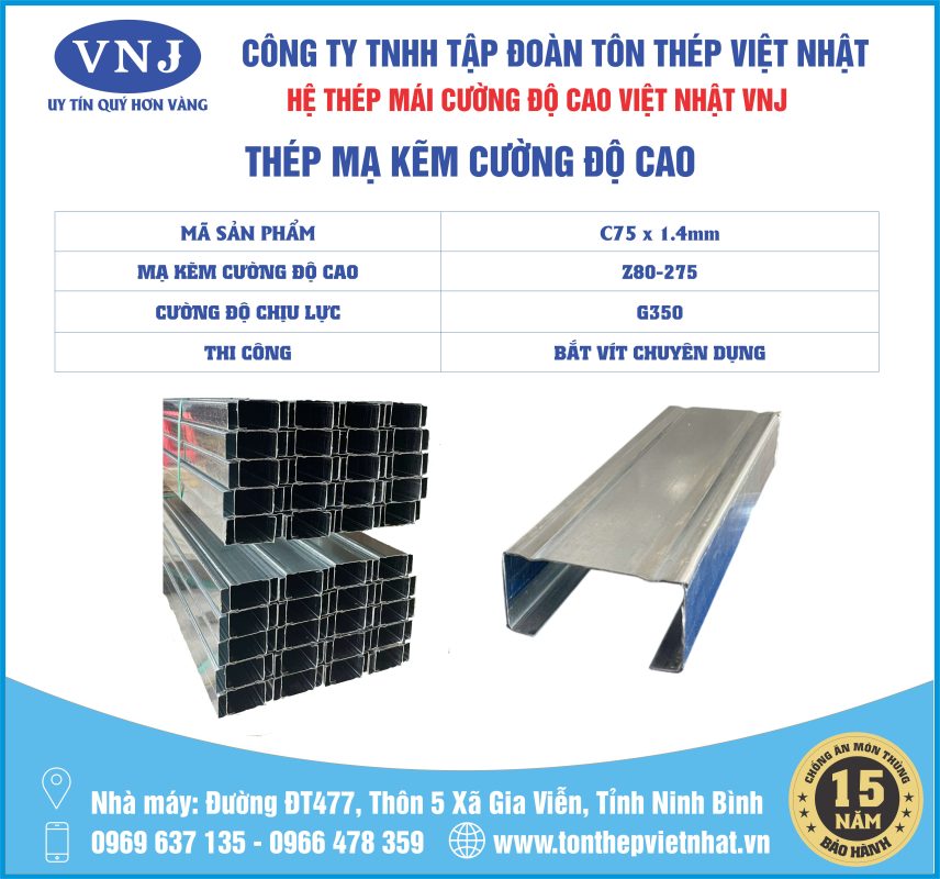 Thanh thép TC75x1.4mm mạ kẽm cường độ cao