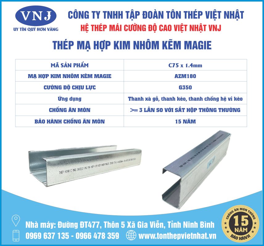 - Chất liệu: Thép cường độ cao G350 mạ hợp kim nhôm kẽm magie AZM180