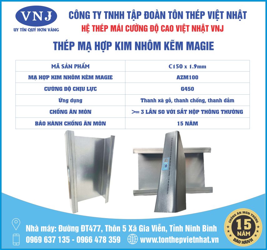 - Quy cánh sản phẩm: 150x60x1.9×6000 (rộng x cao x dày x dài)