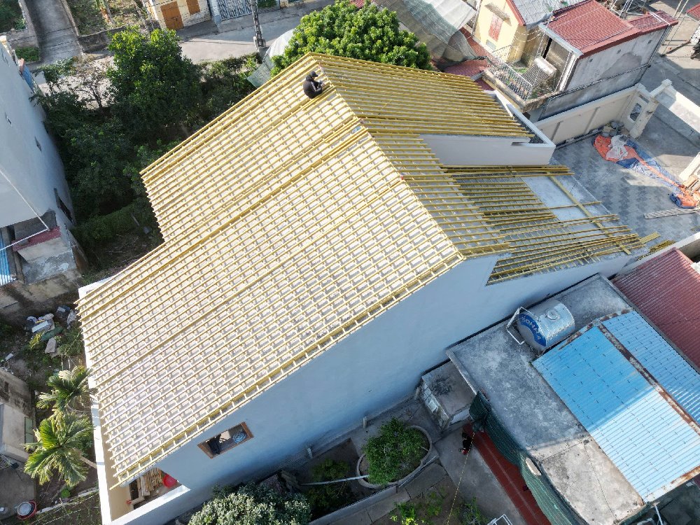 - Lợp ngói lên hệ khung kèo thép: Ngói sẽ được lợp lên hệ khung kèo xà gồ, dễ thi công, tháo dỡ.