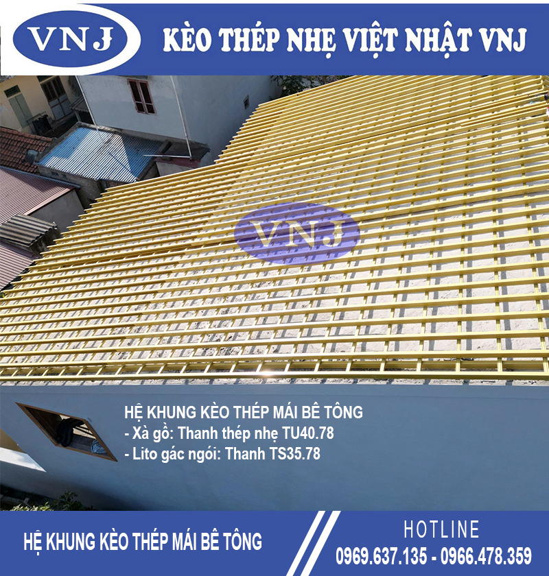 Thép nhẹ Việt Nhật VNJ giải pháp hiện đại cho khung kèo thép nhẹ mái bê tông